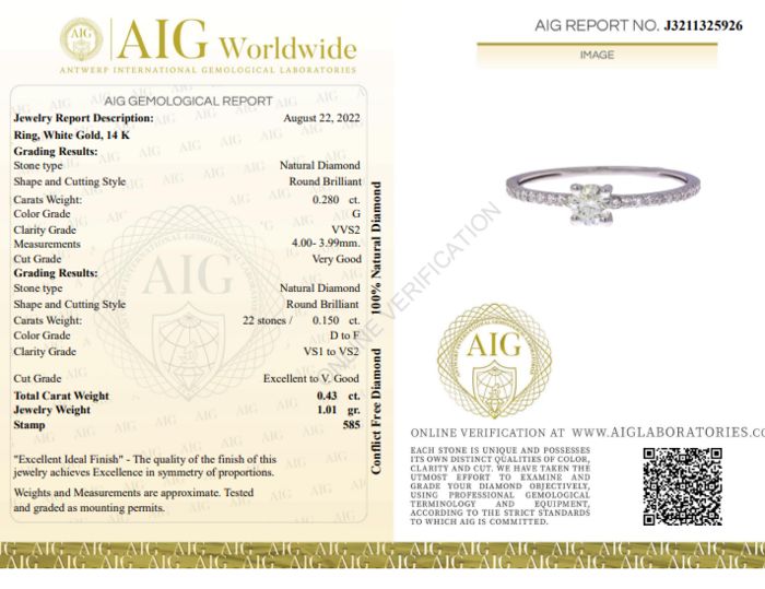 Total Carat Weight: 0.43ct.