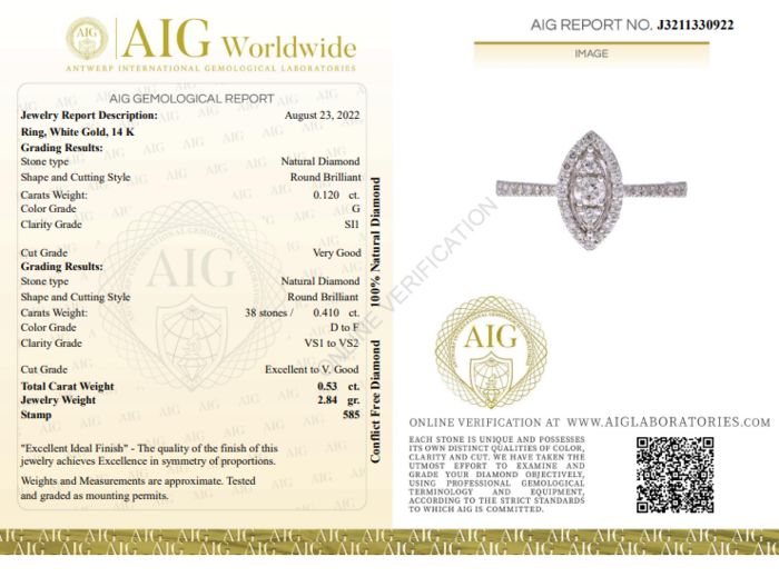 Total Carat Weight: 0.53ct.